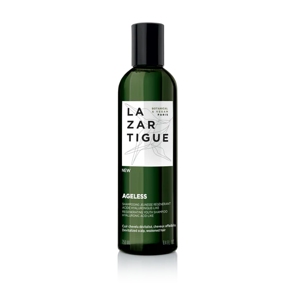 Formulado con un 94% de ingredientes de origen natural, el Champú Regenerador Ageless es vegano, sin sulfatos, sin siliconas y sin aceites minerales, revitalizando eficazmente el cuero cabelludo e hidratando los largos del cabello.